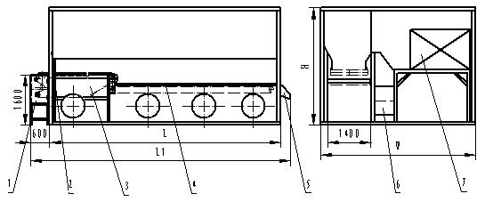 1 前部装置 2 防护网 3 保温库板 4 流态床 5 风机 6 检修通道 7 蒸发器