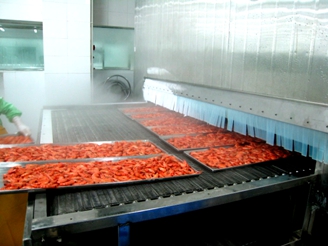 The material in the course of transmission by the strong cold air from the bottom up, boiling in a fluidized bed to be a fluidized state, due to a big contact surface between the strong cold air and the surface of the materials, so it is frozen faster than general blast freezer, and frozen products is monomeric states, features as below: